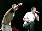Two pics from Venezia, Italy, 20th June 2008. You can notice the black banner saying "After the storm, here again for LP" at Mike's keyboard, since the last Italy concert was canceled due to a storm. The banner belongs to vfede and was written by his friend YuN. The second pictures in the two below was taken by YuN, also. Such a strong message :)